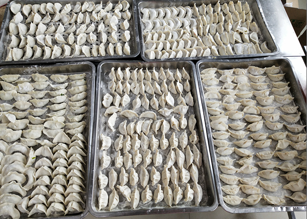 大家齊心協(xié)力,用心包出的餃子如一排排元寶華麗亮相。每一個餃子都代表對員工的一份關(guān)愛,一份祝福。