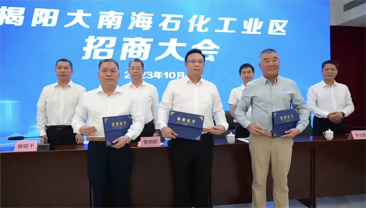 10月20日上午,揭陽大南海石化工業(yè)區(qū)招商大會順利舉行,以招商引資大突破助推發(fā)展動能大提升。揭陽市委常委、副市長、大南海石化工業(yè)區(qū)黨工委書記蔡淡群,大南海石化工業(yè)區(qū)黨委副書記、管委會主任陳曉平等出席會議,惠城環(huán)保集團創(chuàng)始人張新功受邀出席并被聘任為招商大使。