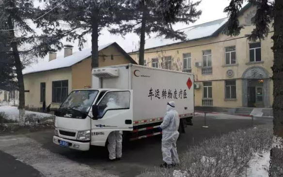 在黑龍江省傳染病防治院,醫(yī)療廢物要照平時(shí)更加及時(shí)的轉(zhuǎn)運(yùn)。此時(shí),醫(yī)療廢物轉(zhuǎn)運(yùn)車正停在這里,對醫(yī)療廢物進(jìn)行清運(yùn)。黑龍江省傳染病防治院副院長劉玉琴介紹,截至1月30號24時(shí),這里共收治兩例確診病例,疑似病例10多例。相對來說,這些患者病情都比較平穩(wěn)。按照國家和黑龍江省疾控部門的要求,黑龍江省傳染病防治院嚴(yán)格執(zhí)行醫(yī)療廢物處置標(biāo)準(zhǔn),使用黃色收集袋封存醫(yī)療廢物,并噴灑消毒液,并與轉(zhuǎn)運(yùn)單位隨時(shí)溝通,及時(shí)轉(zhuǎn)運(yùn)。劉玉琴說:“每天早晨七點(diǎn)半到八點(diǎn)半會有專車過來,定時(shí)、定點(diǎn)、定人轉(zhuǎn)接。根據(jù)患者量產(chǎn)生垃圾不同,下午可能要臨時(shí)再過來一次,集中再收走。”